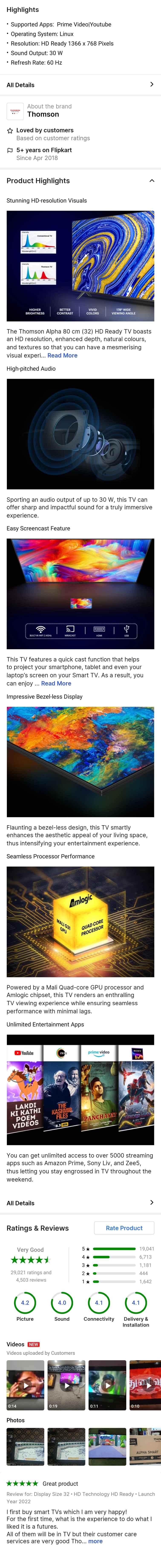Thomson Alpha 80 cm (32 inch) HD Ready LED Smart Linux TV 2022 Edition with 30 W Sound Output & Bezel-Less Design (32Alpha007BL)